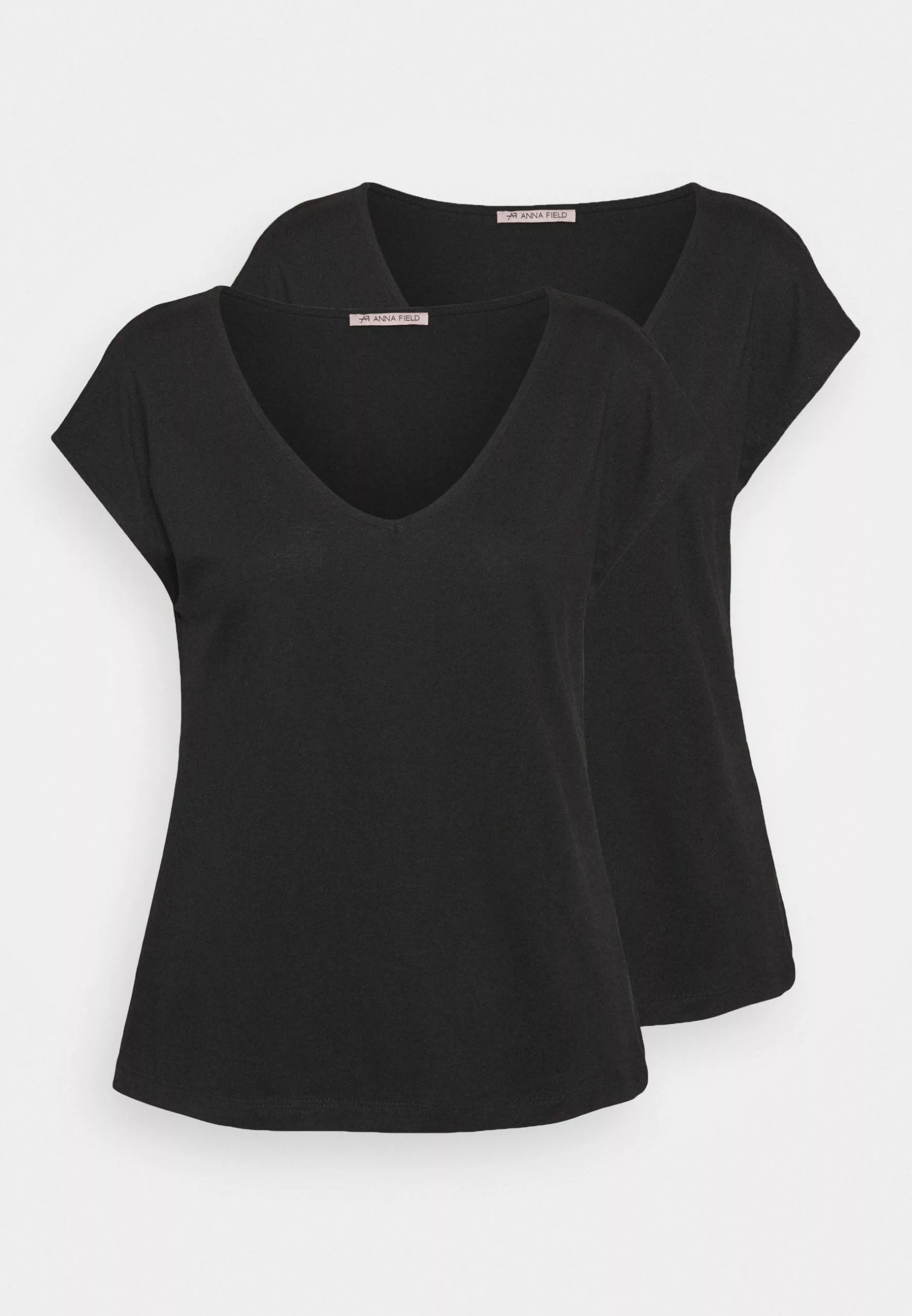 Anna Field Basic V Neck Drop Shoulder 2 Pack- Basic T-Shirt – Black