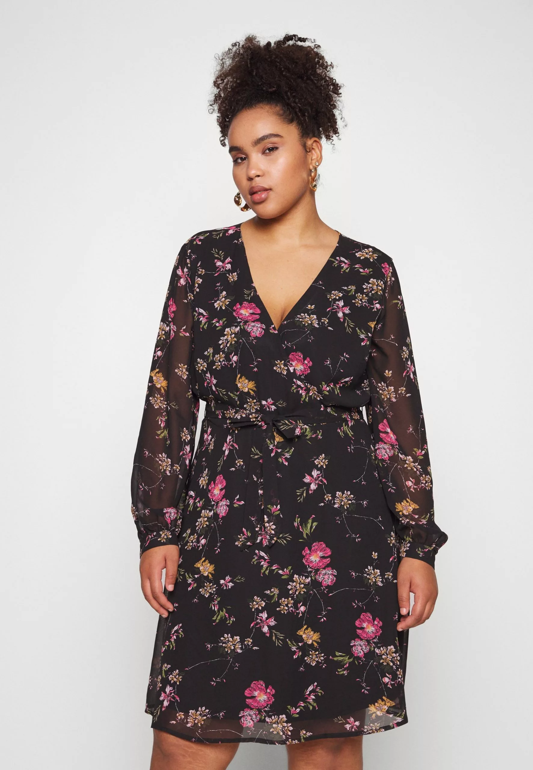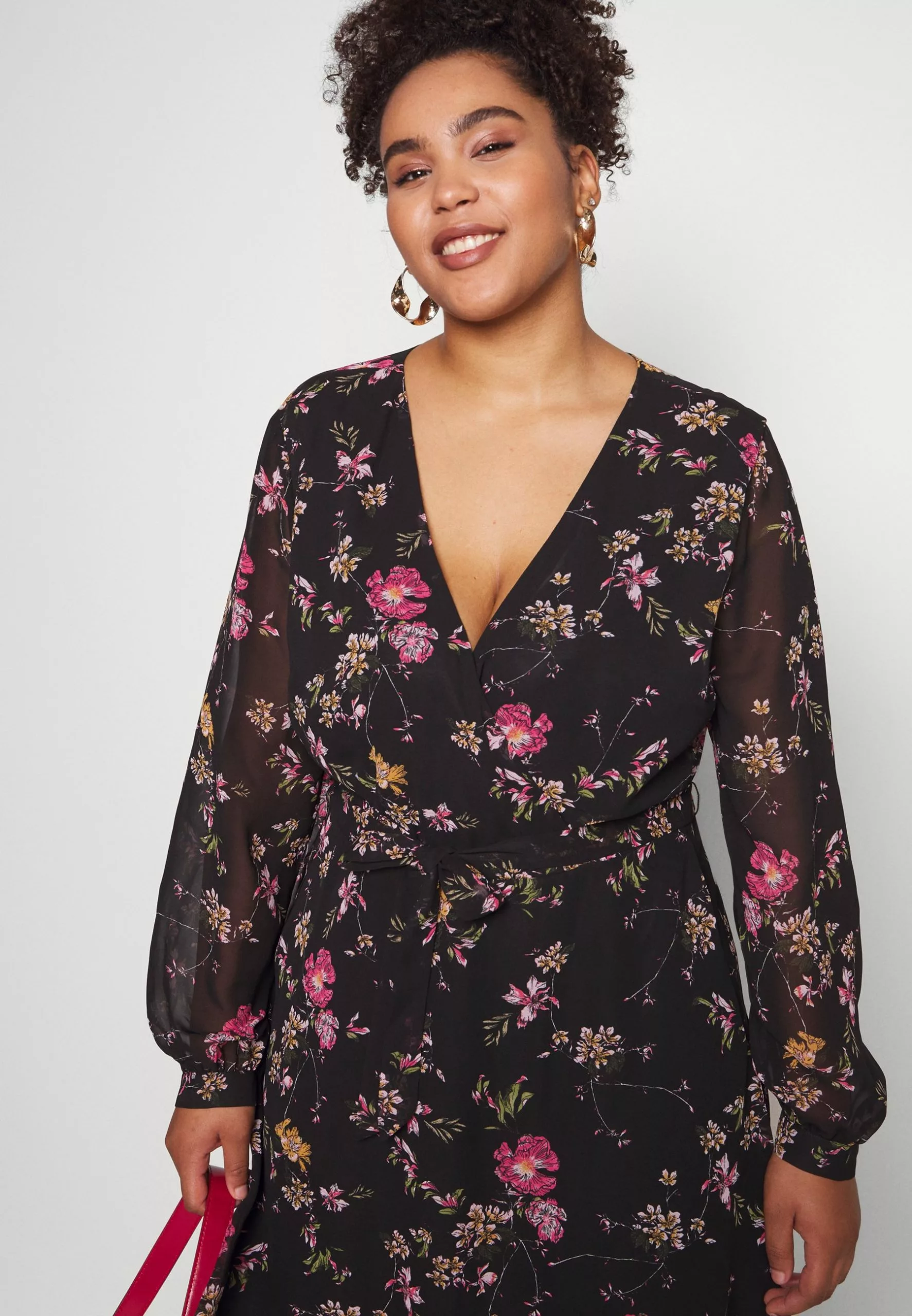 Anna Field Curvy Day Dress – Black/Pink