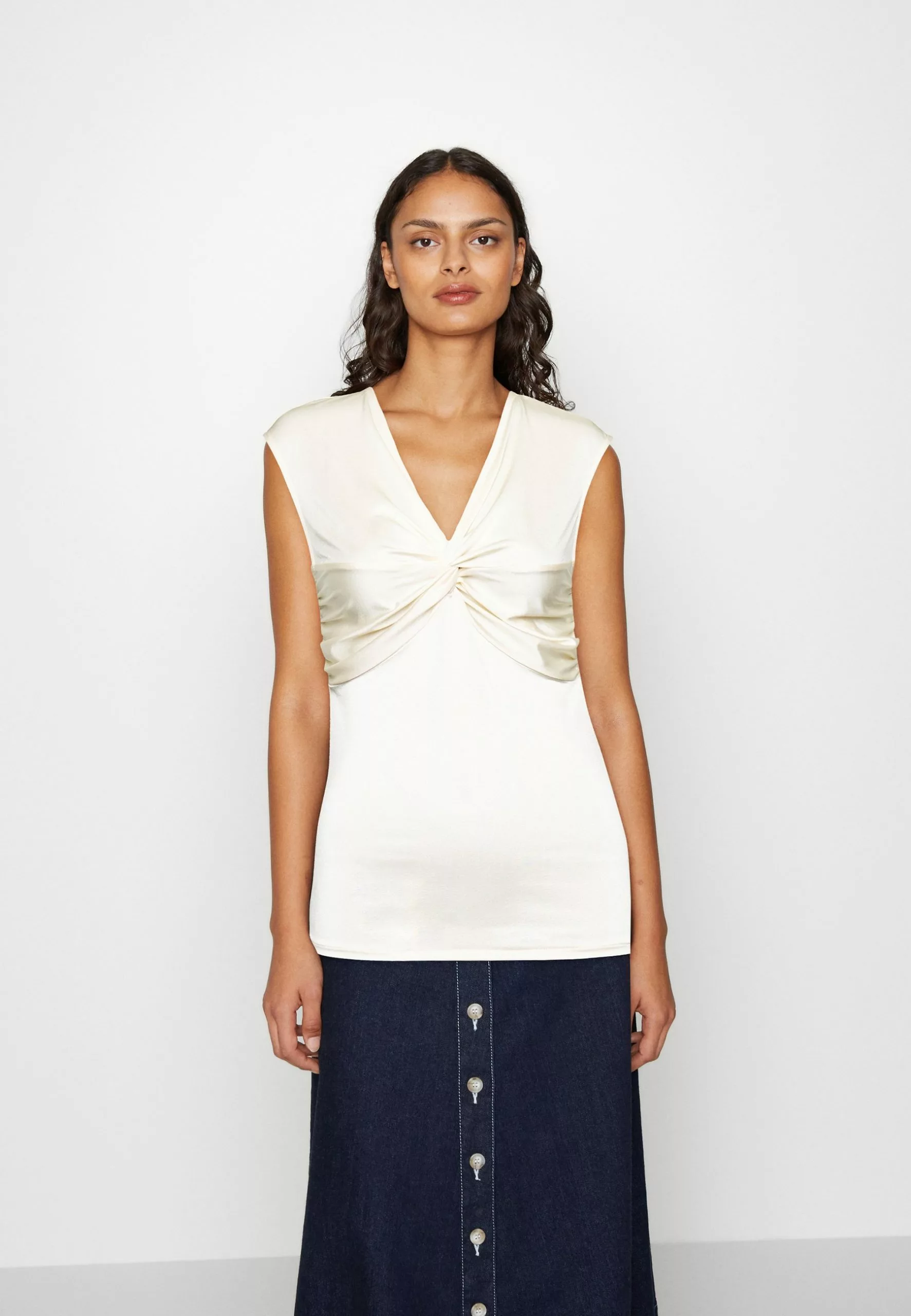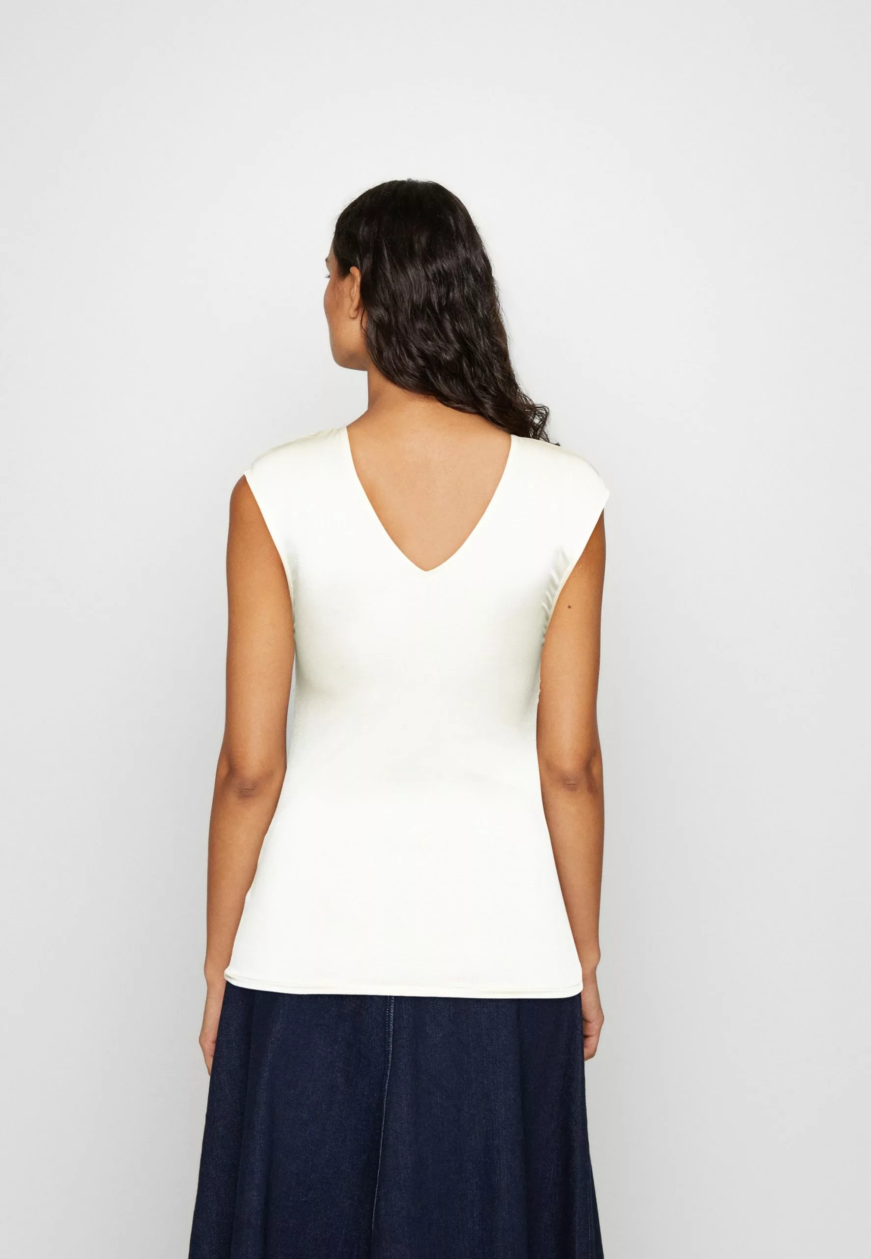 | Neckline | Low-cut v-neck |