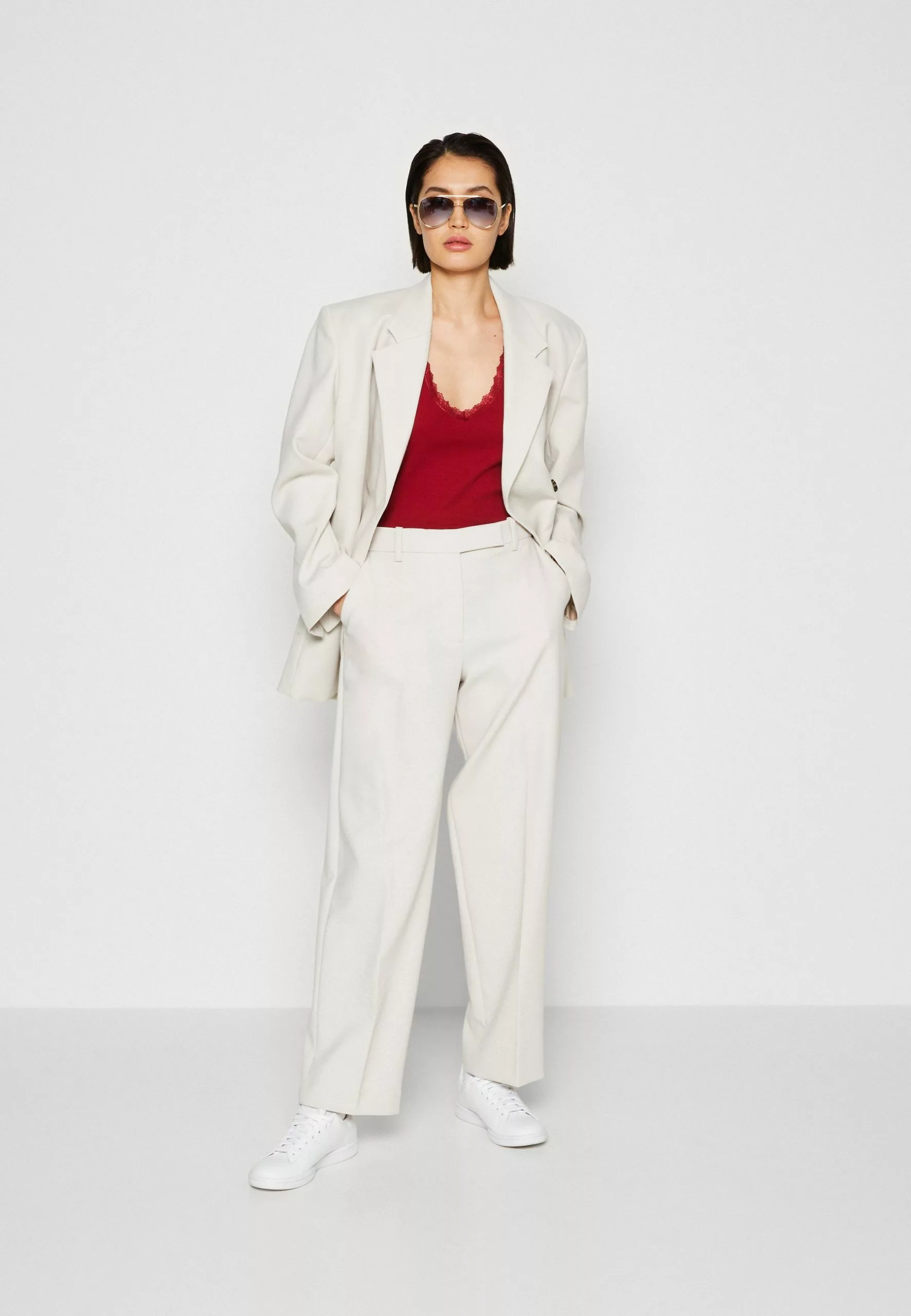 | Neckline | Low-cut v-neck |